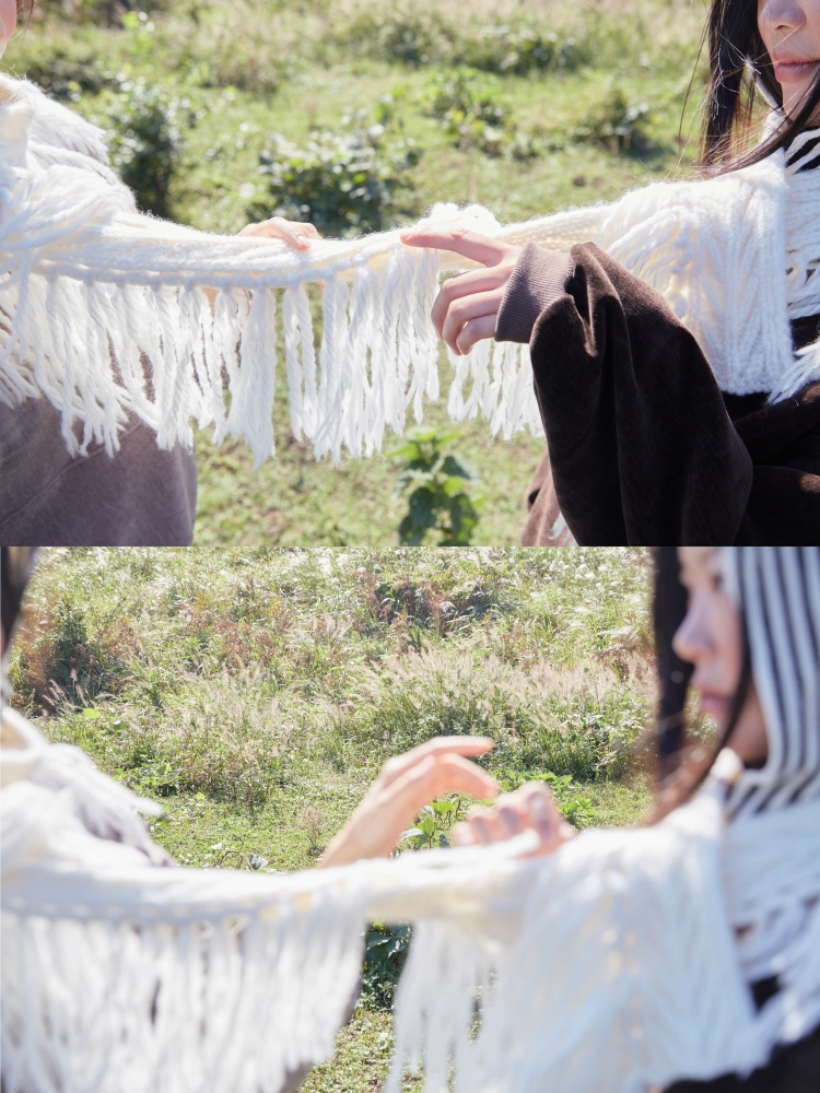 수작업 (핸드메이드) 프린지로 제작된 FRINGE INDIE MUFFLER.