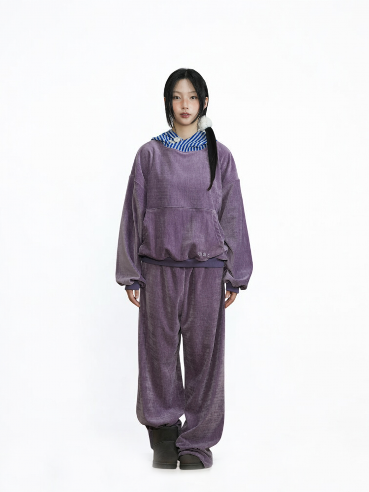 동일 소재의 VELVET STRIPE PUFF HOODIE 와 함께 셋업으로 룩을 완성해 보세요!