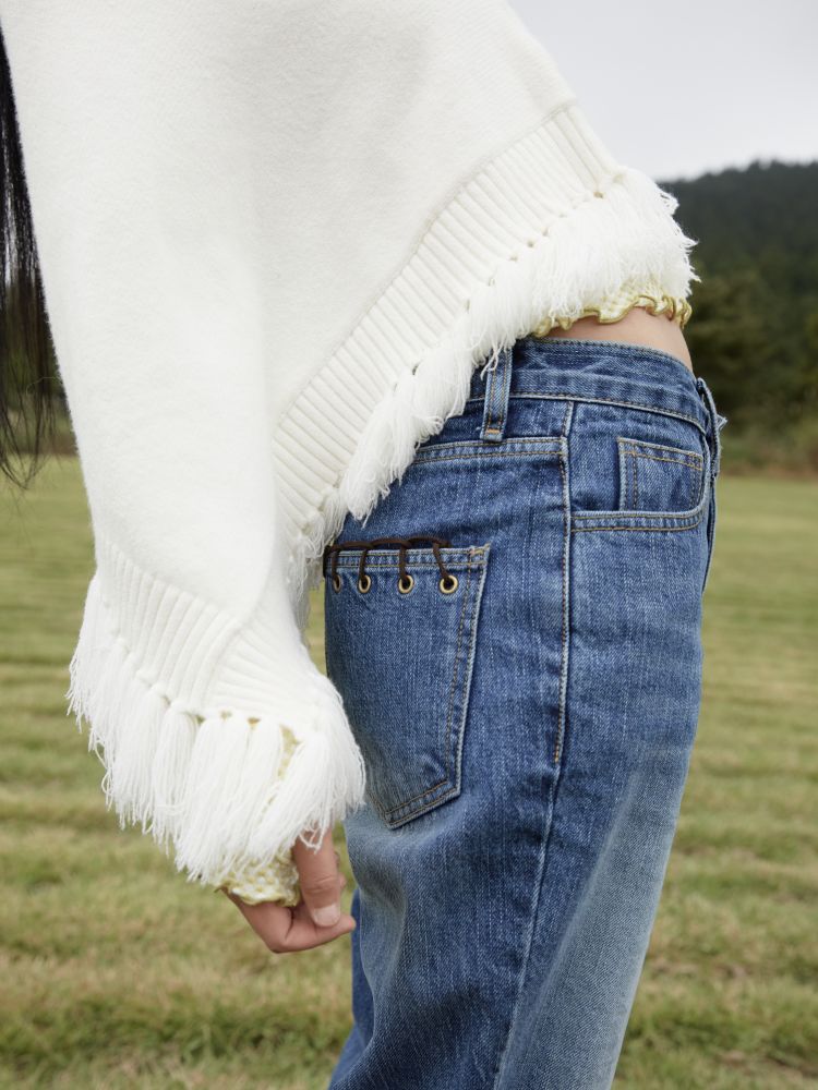 테슬 / 아일릿 / 부츠컷 / 미드 라이즈 / YKK 지퍼 / 지구 금형 니켈 단추