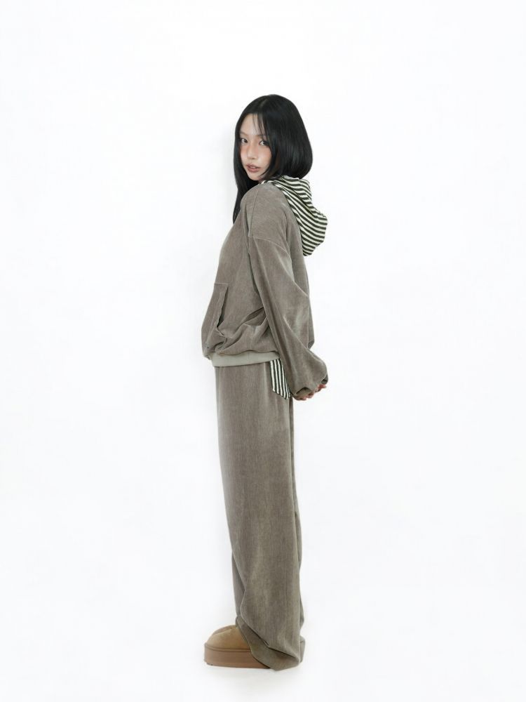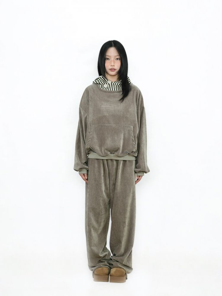 동일 소재의 VELVET STRIPE PUFF HOODIE 와 함께 셋업으로 룩을 완성해 보세요!