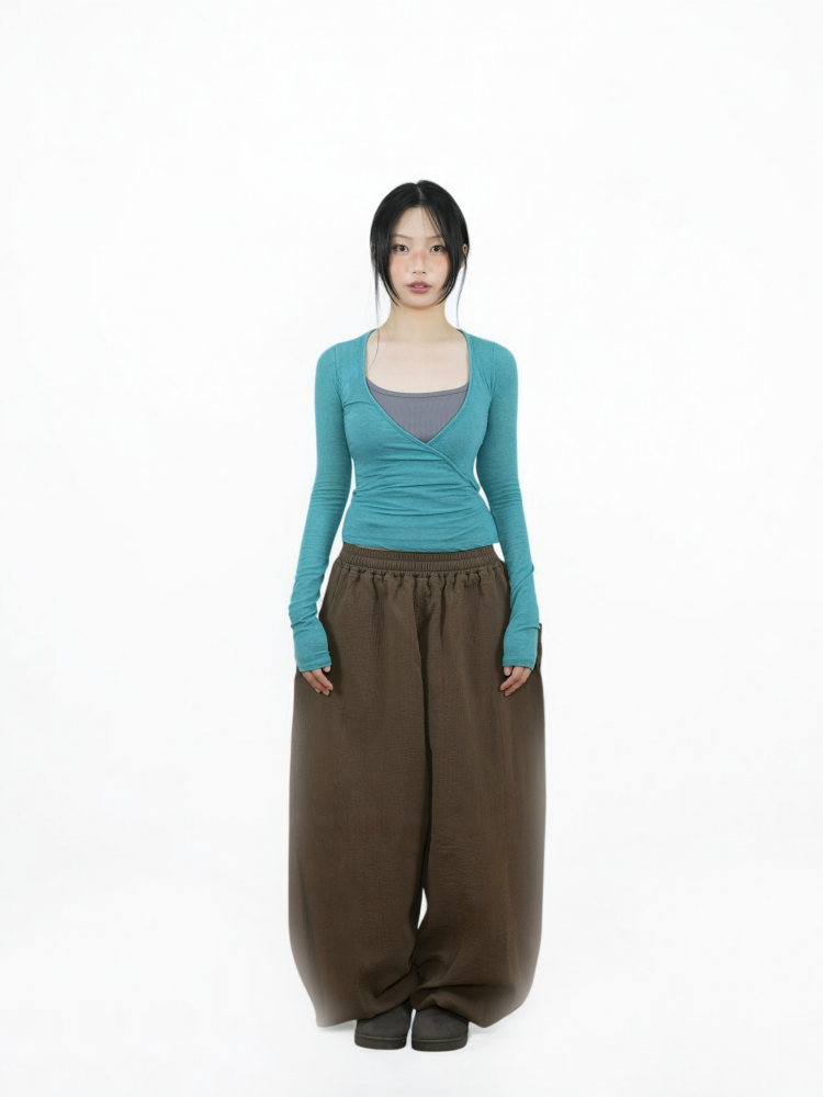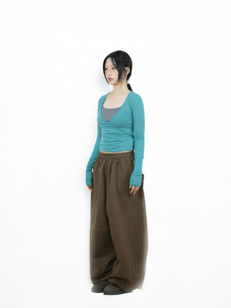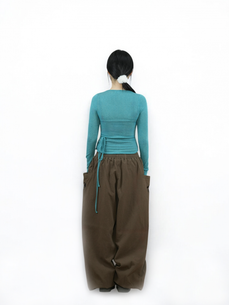 옆선 홀에 끈을 안으로 넣어 연출하는 랩 가디건 형태의 디자인으로, 긴 소매와 허리 스트랩이 여리여리한 실루엣을 완성합니다. 🌿