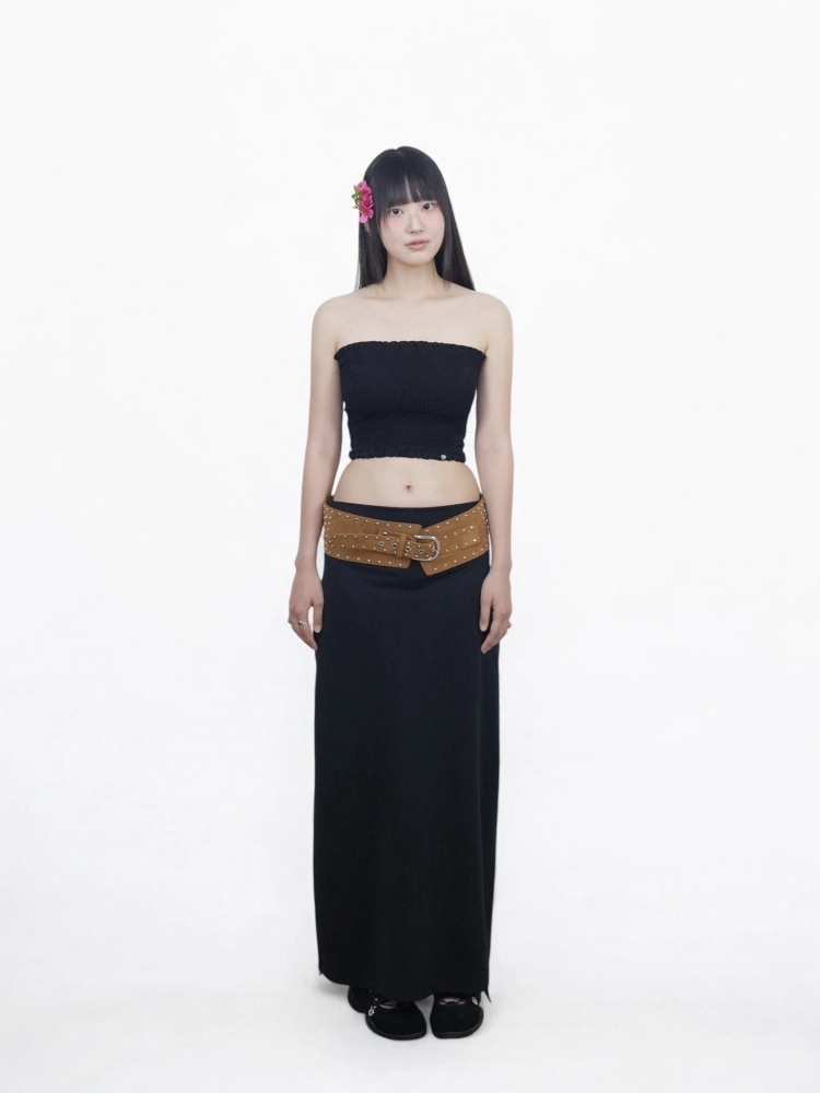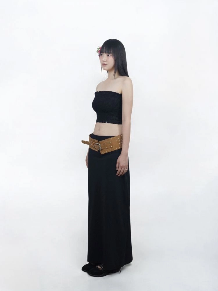 바디를 힘 있게 감싸는 스모크 원단과 부유방을 자연스럽게 커버하는 윗단 디테일로,