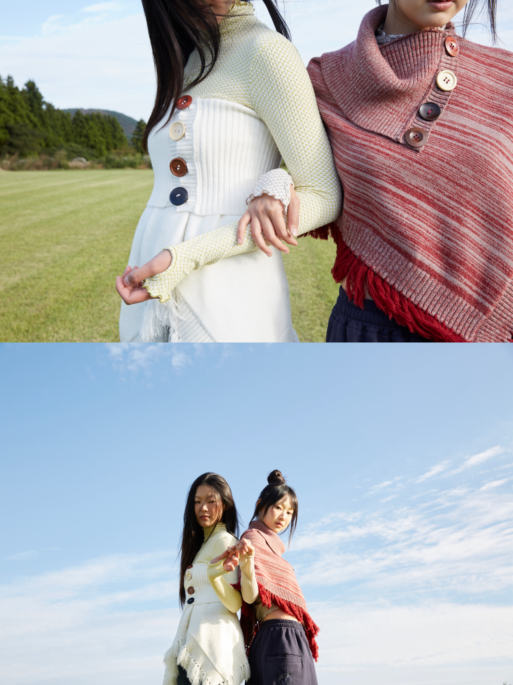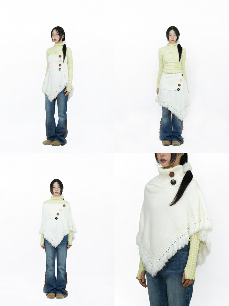 단 한 벌로 4~5가지 스타일링 (판초, 오프숄더, 튜브탑, 스커트) 을 완성할 수 있는 멀티웨이 니트 판초를 소개합니다 🎶