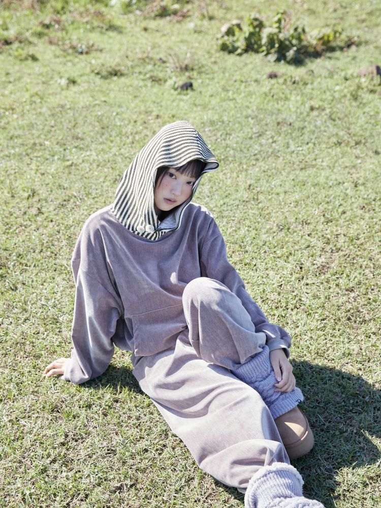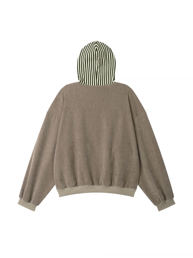 VELVET STRIPE PUFF HOODIE (OAT)