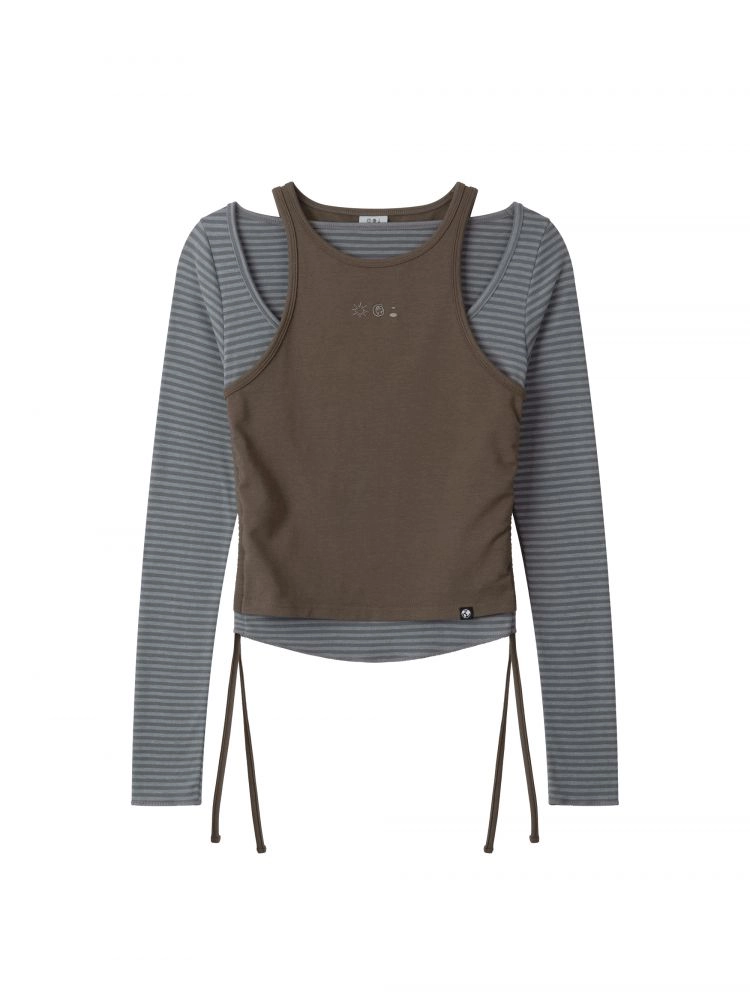 레이어드 / 컷 아웃 / 셔링 스트링 / 자수 로고