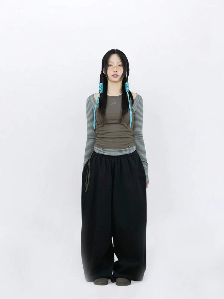 스트링으로 조절 가능한 셔링 디테일을 더해 폭과 기장을 체형에 맞춰 연출할 수 있으며,