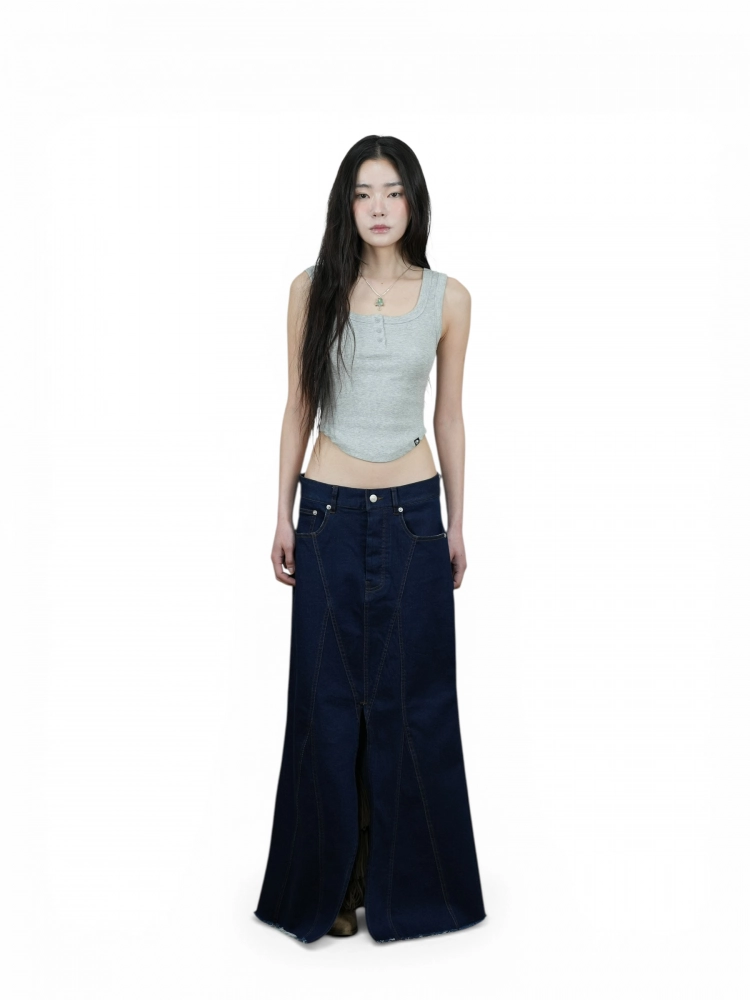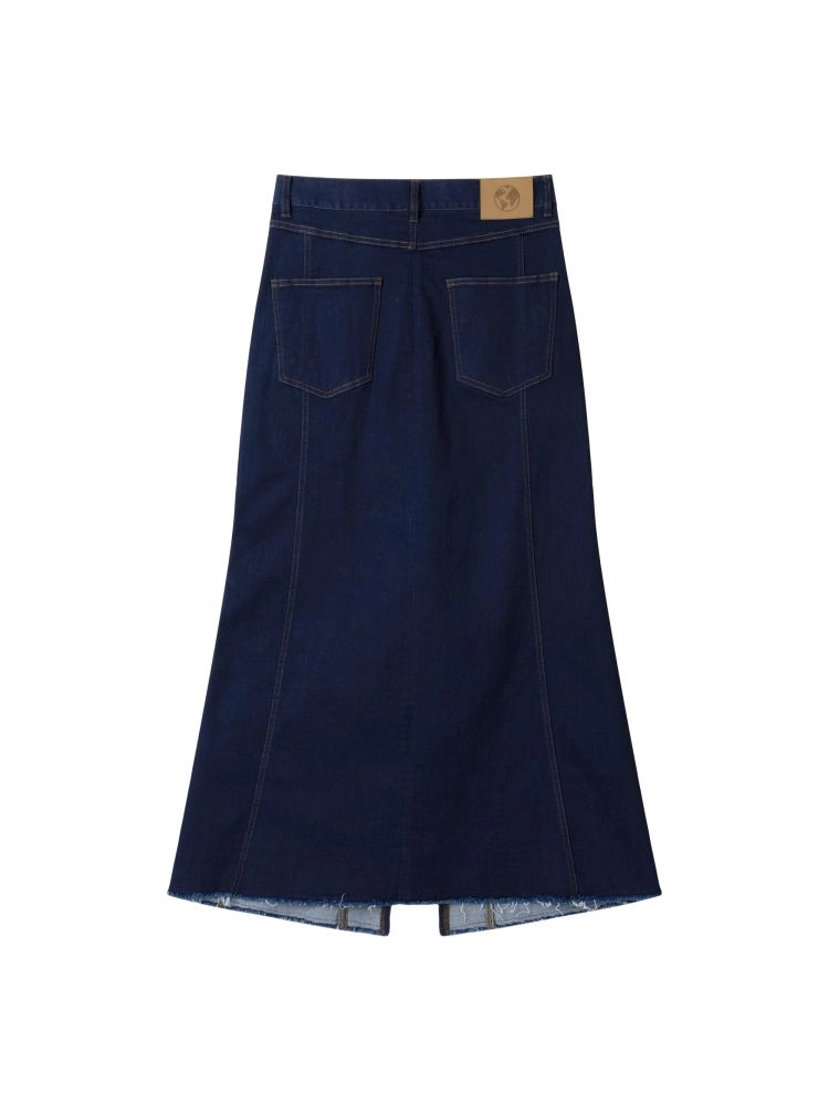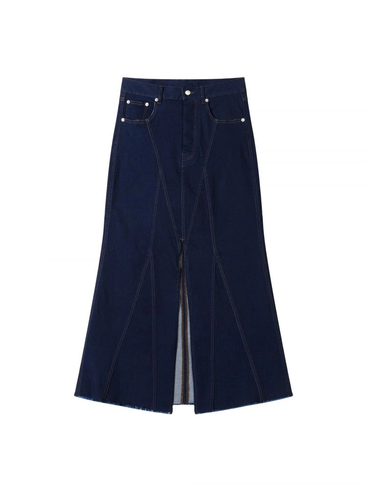 SLIT MAXI DENIM SKIRT (DEEP BLUE)