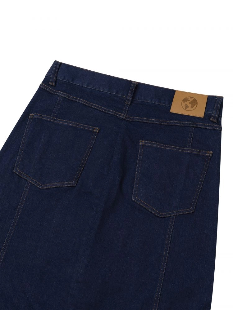 스판 데님 / 프론트 슬릿 / 지구 단추 / 레더 라벨