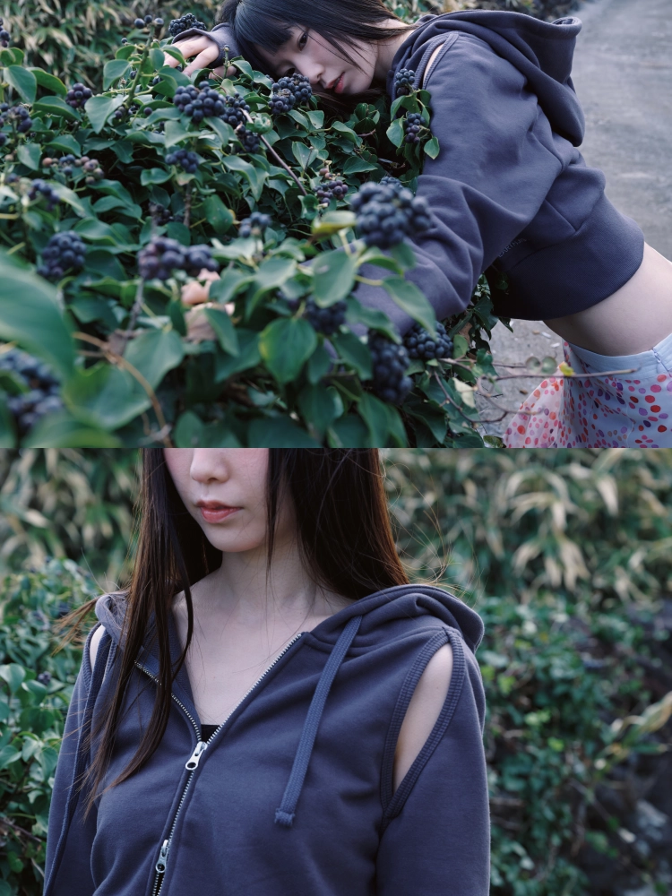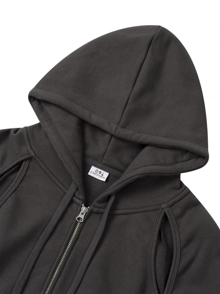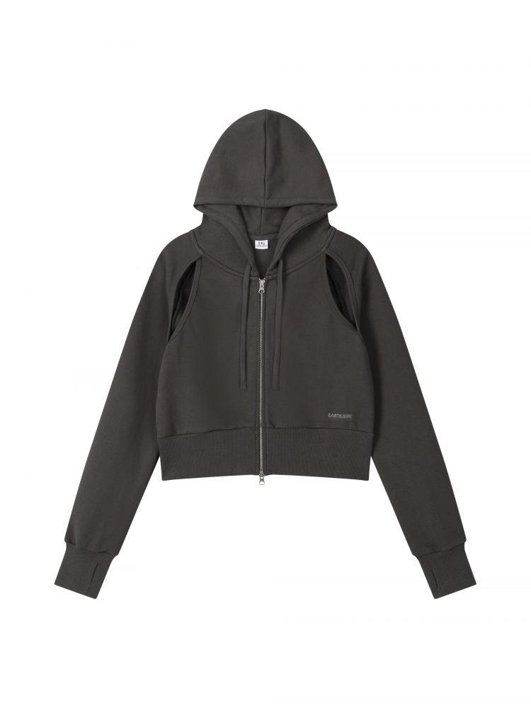 CUT OUT CROP HOOD ZIP-UP (CHARCOAL)