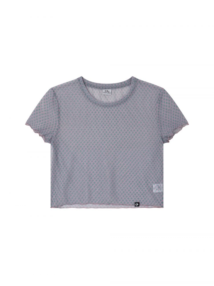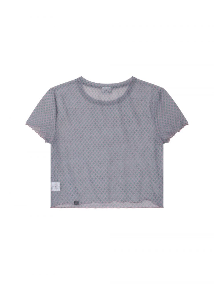 MESH CHECK CROP TEE (PINK)