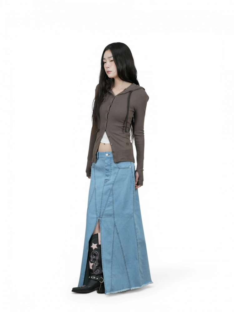 여러 가지 스타일링이 가능한 후드 형태의 슬림핏 가디건.