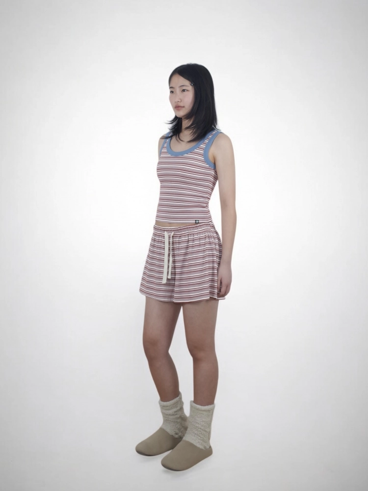 스판 / 스트라이프 / 밴딩 / 허리 조절 끈 / 숏 기장 / 포켓[2] / 포인트 라벨