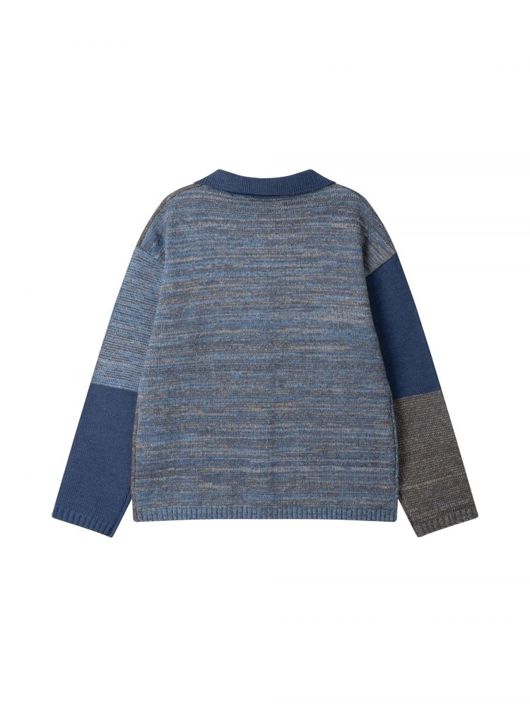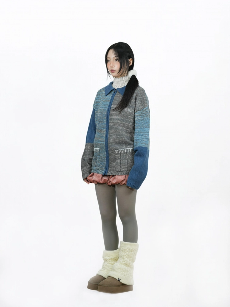 멜란지 니트 / 유니섹스 / YKK 지퍼 / 스티치 포켓 / 카라넥 / 자수 로고