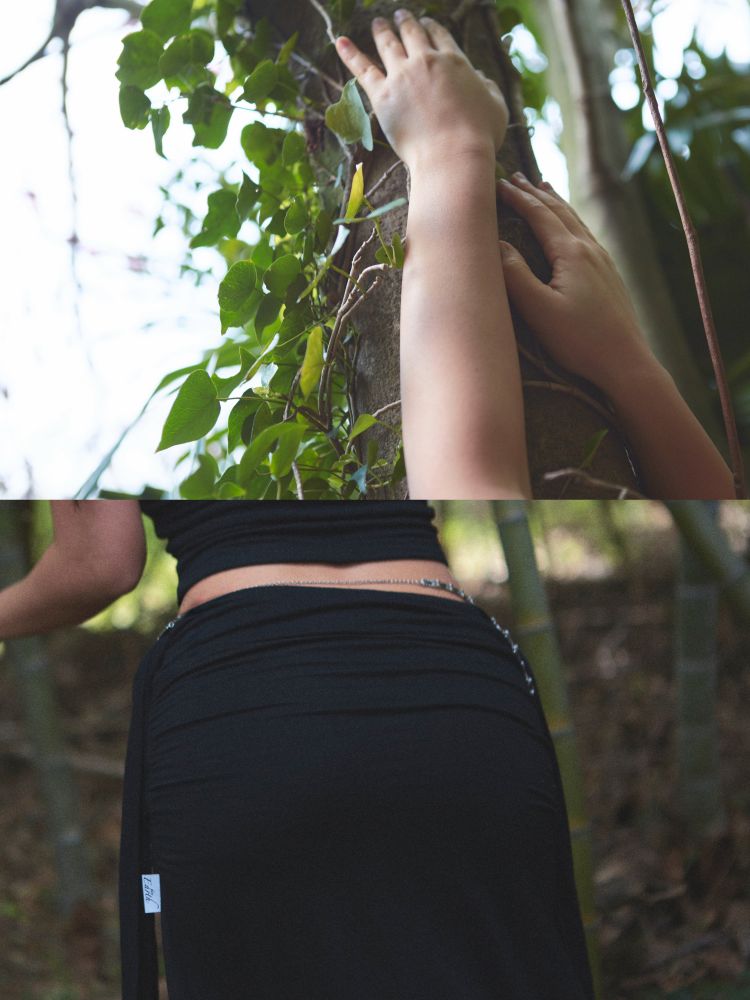 타이다이 / 스판 / 언발란스 / 허리 끈 / 미디 기장 / 포인트 라벨
